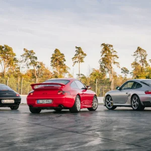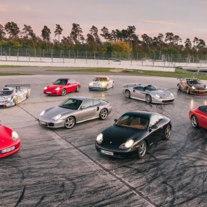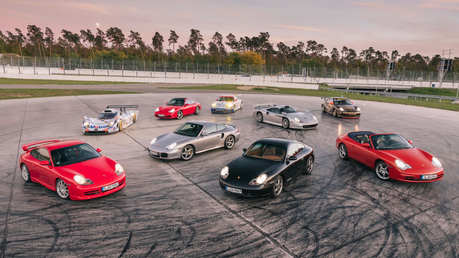 Esimene rida: 911 GT3 (996), 911 Turbo S Coupé (996), 911 Carrera 4 Millennium (996), 911 Carrera 4 Cabriolet (996), tagumine rida: 911 GT1 `98, 911 Targa (996), 911 GT3 RSR, 911 GT1 tänavaversioon, 911 GT3 Cup (996)