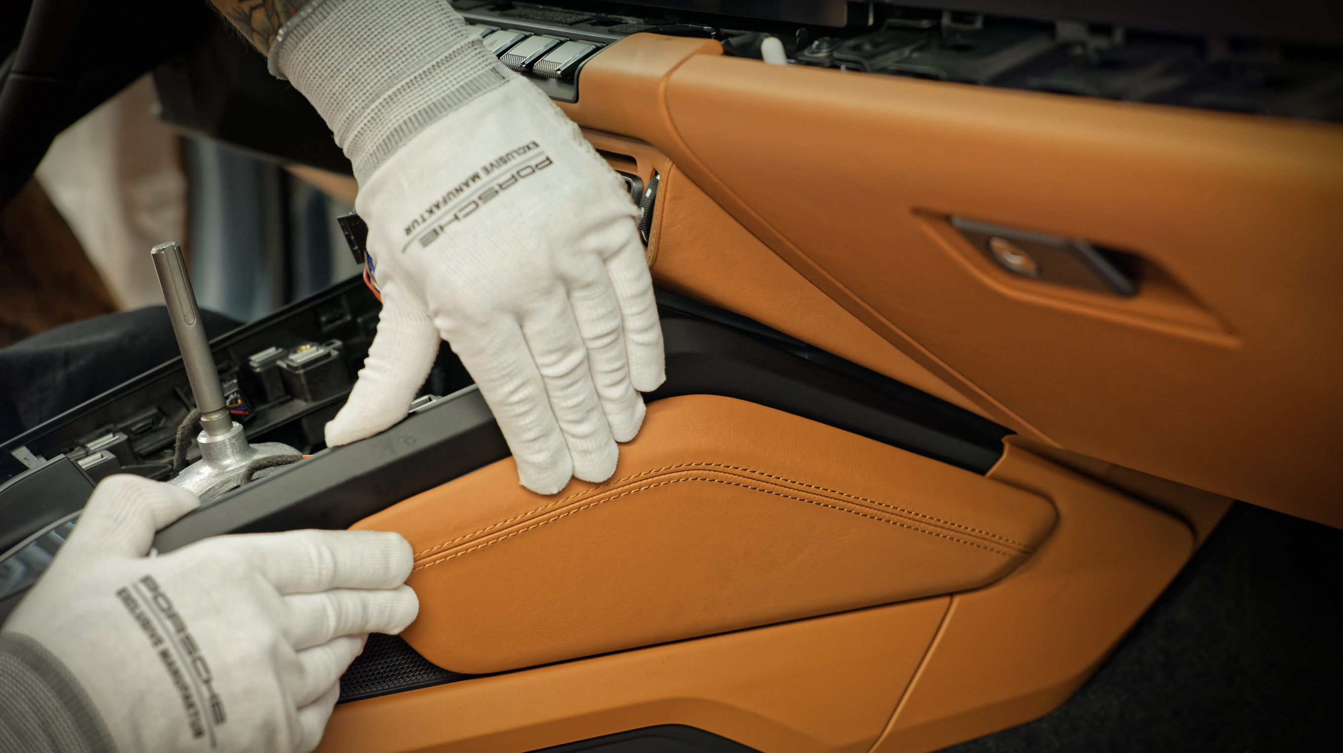 Erinevalt paljudest teistest autotootjatest on Porschel Zuffenhauseni tehases oma sadulsepatöökoda. Siin lõigatakse välja, õmmeldakse kokku ja paigaldatakse peaaegu kõik nahast, Race-Texist ja kangast valmistatavad interjööripinnad. Lõikamiseks kasutatakse automaatset kõrgsurve-veejoaga lõikurit. Õmblusalal õmmeldakse katted kokku ja valmistatakse ette vooderdamiseks. Et tagada oma kõrgete kvaliteedinõuete täitmist, on Porsche üks väheseid tootjaid, kes autointerjööride valmistajaid ise välja koolitab.