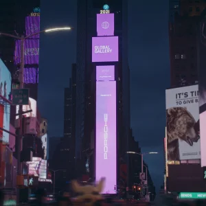 Porsche Global Gallery näitus aga pakub lootustandvatele kunstnikele võimalust näidata oma digitaalteoseid kuulsatel reklaamipindadel mitmel pool maailmas, näiteks New Yorgi Times Square’il. Projekt käivitati 9. oktoobril ning kestab kaheksa nädalat, olles partnerlus sportautotootja ja noortele talentidele keskendunud kuulsa König Galerie vahel.