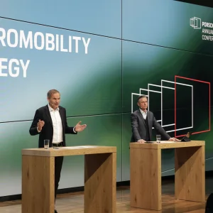 Eelmisel aastal oli ligi 40 protsenti kõigist Euroopasse tarnitud uutest Porsche sõidukitest vähemalt osaliselt elektrilised, st pistikhübriidid või täiselektrilised mudelid. Lisaks on Porsche andnud teada oma kavatsusest saada aastaks 2030 süsinikuneutraalseks. „Aastal 2025 peaks pool uute Porschede müügist tulema elektrisõidukite müügist, st täiselektrilistest ja pistikhübriidsõidukitest,“ teatas Oliver Blume. „Aastaks 2030 peab täiselektrilise ajami osakaal uute sõidukite puhul olema üle 80 protsendi.“ Nende auahnete eesmärkide saavutamiseks teeb Porsche koos partneritega investeeringuid preemium-laadimisjaamadesse – ning täiendavalt ka oma laadimistaristusse. Suured investeeringud voolavad ka põhitehnoloogiatesse, näiteks akusüsteemide ja -moodulite tootmisse. Värskelt loodud Cellforce Group töötab välja suure jõudlusega akuelemente, mis peaksid olema seeriatootmiseks valmis aastal 2024.
