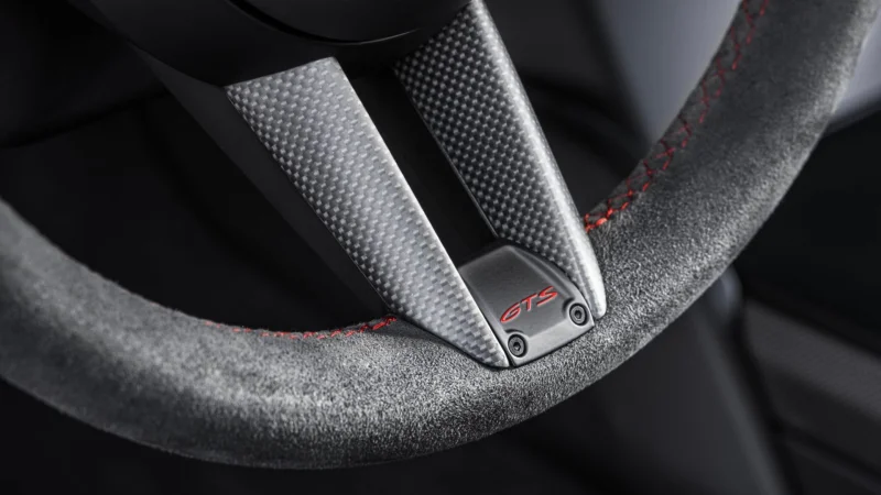 Nii välis- kui ka sisekujundus on GTS-mudelitele iseloomulikud. Väljaspool hakkavad silma mitmed GTS-idele traditsioonilised mustad keredetailid nagu esikaitseraud, küljepeeglite alumised osad ja küljeakende raamid. Interjööris rõhutavad arvukad musta Race-Texiga viimistletud osad elegantset ja dünaamilist õhkkonda, mida aitab luua ka põhivarustuses sisalduv matistatud alumiiniumist interjööripakett koos musta anodeeritud viimistlusega.